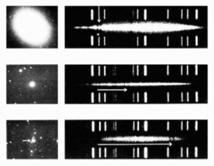Images originales de Hubble et Humason montrant le décalage vers le rouge de quelques galaxies distantes.