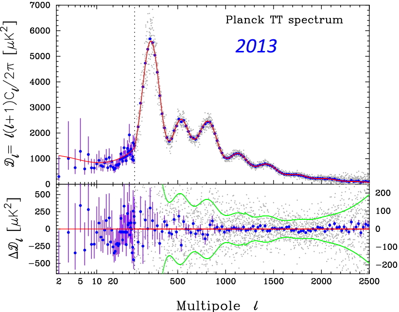 Le CMB montre aussi que l'Univers vibre comme la peau d'un tambour, on s'en aperçoit en traçant le spectre de puissance de ce bruit de fond.