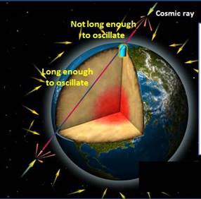 Mais on a mis en évidence un déficit entre le nombre de neutrinos de type muonique détectés provenant des antipodes et les prévisions théoriques, on n'en détecte pas deux fois plus que des types électroniques. Pourquoi?