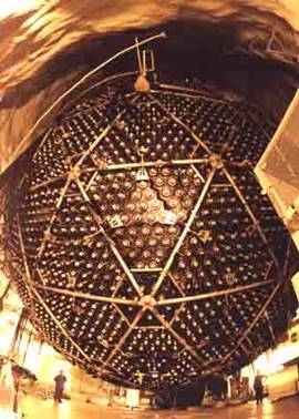 Le détecteur est une immense sphère d'acrylique de 12 mètres de diamètre. Tapissée de détecteurs PMT.
