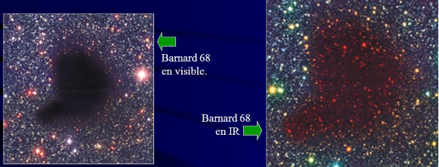 Il existe des nébuleuses sombres, comme ce nuage de Barnard ; ce sont des nuages moléculaires contenant beaucoup de poussières qui bloquent la visibilité.