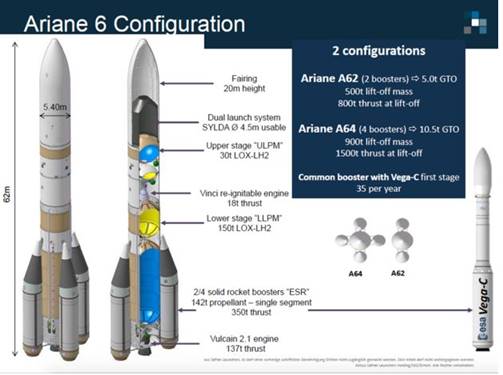 La version Ariane 64 permettra d’emporter deux satellites en GTO (10,5t) et devrait coûter un peu plus de 110 millions€. Rappelons qu’un lancement SpaceX pour un satellite est évalué à 60 millions €.