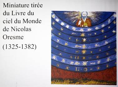 La Terre est au centre et tout tourne autour, au-delà de Saturne, se trouve les étoiles, la sphère des fixes, en principe immuable.