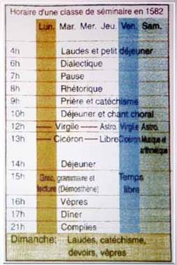On voit sur la figure ci-contre, l’horaire typique d’une classe de séminaire !