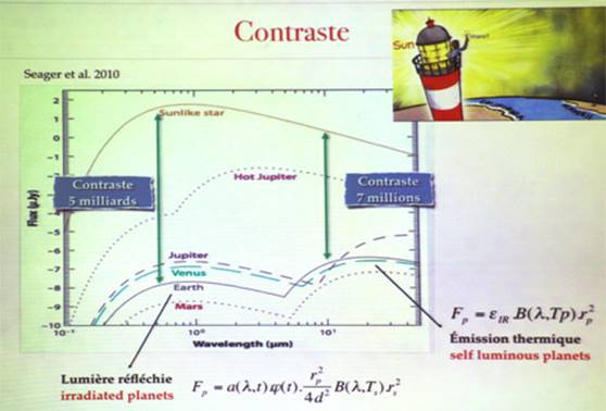 On voit qu’il y a un problème de contraste ; par exemple le rapport luminosité par rapport au Soleil de la Terre est de 5 109 .