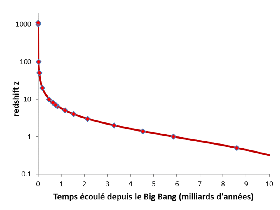 On observe des galaxies jusqu’à un z de 10 (z= redshift =