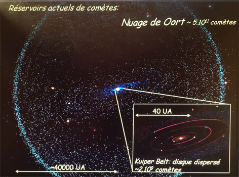 démarre avec des généralités sur les lieux de formation des comètes, comme on le