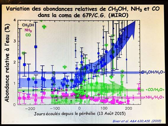 on remarque que le passage de l’aphélie fait augmenter CH3OH grandement.