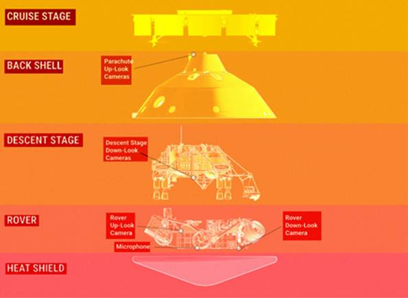 toutes les phases de la descente et de l’atterrissage (EDL cameras) :