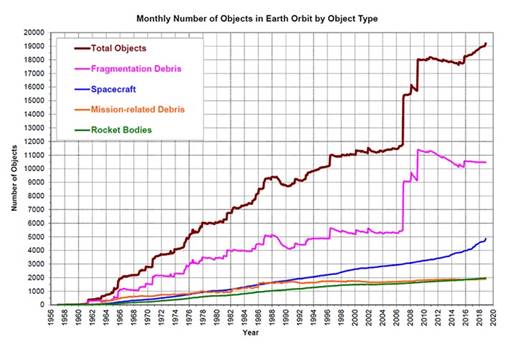 On voit ici le nombre d’objets en orbite terrestre par type.