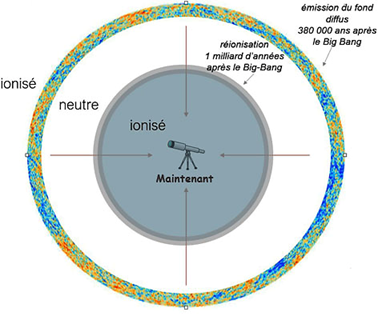 ce que l’on appelle la phase de réionisation. Un milliard d’années après le BB,