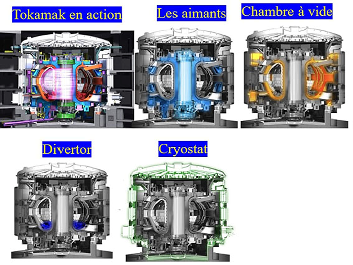 génèrent un champ magnétique pour confiner le plasma. Les bobines de champ