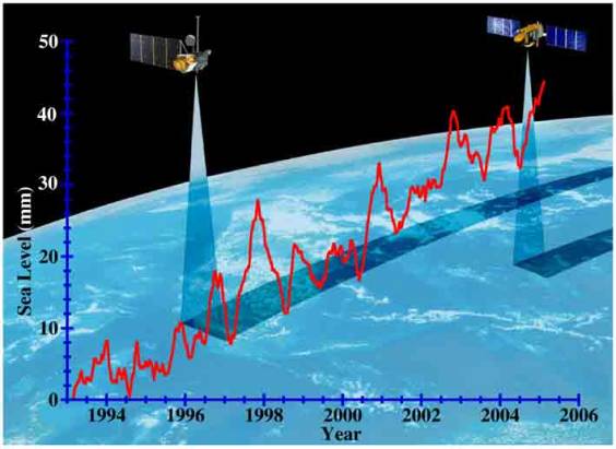 niveau de la mer est ainsi mesurée à moins de 4 cm près,