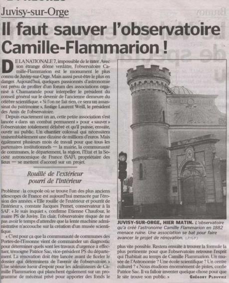 SAF (fondée par Camille Flammarion) et nous tous, sommes concernés par son
