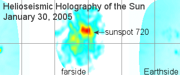 par les reflets du soleil sur le bouclier thermique.