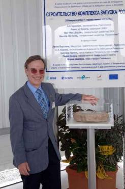 (Yannick d'Escatha, Président du CNES  inaugurant la pierre de Baïkonour  Photo : CNES)