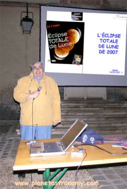 Elle commença avec votre serviteur (photo de gauche) qui a parlé de la Lune du phénomène des éclipses et de ce que l'on sait sur la Lune et sa formation.