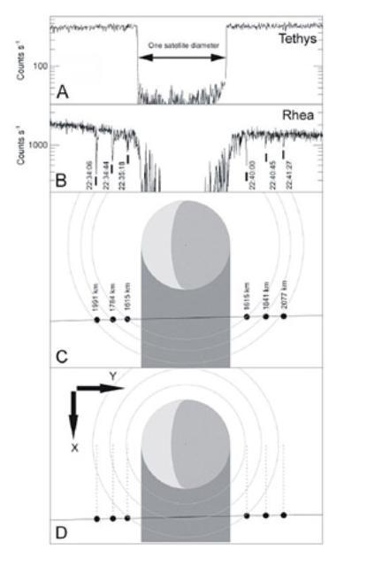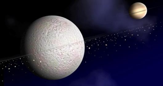 des preuves que le gros satellite de Saturne (1500km de diamètre), Rhéa