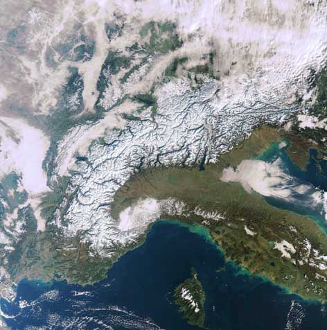UNE VUE DE L'ESPACE : LES ALPES SOUS LA NEIGE. (22/02/2009)