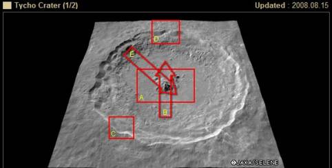 Vue du cratère Tycho avec les différents axes de prises de vue