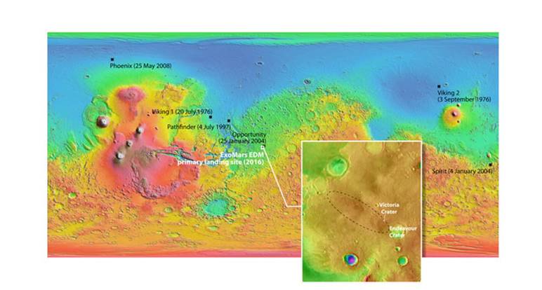 · Atterrissage en douceur (module EDM) sur Mars (après l’échec de Beagle 2)