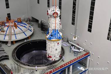 Le module Tianhe en cours de test dans une chambre environnementale.