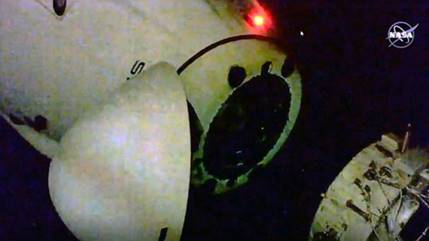 on voit particulièrement bien le nœud d’échange servant de docking aux vaisseaux