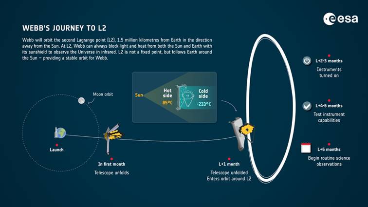sera placé au point de Lagrange L2 du système Terre-Soleil (à 1,5 millions de km