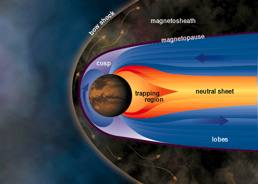 l'atmosphère martienne (car pas ou peu de champ magnétique sur Mars)