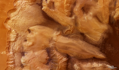 (backshell) ainsi que celles du parachute. De même au Nord du cratère on