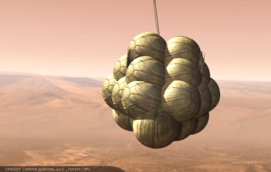 de ralentir la chute dans l’atmosphère martienne par un jeu d’airbags