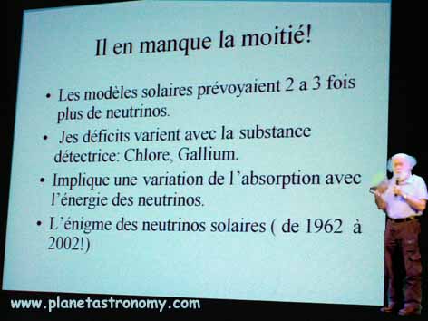 Les conférences de Hubert Reeves, célèbre astrophysicien d'origine canadienne, sont toujours très attendues, c'est encore le cas aujourd'hui avec l'histoire des neutrinos, l'amphithéâtre de la Cité des Sciences est plein.