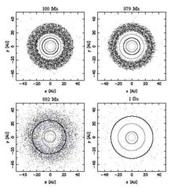 simulation numérique effectuée par A Morbidelli et ses collègues (Rodney