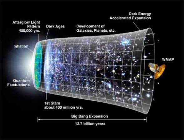 chronologie de l'évolution de l'Univers par NASA/WMAP.
