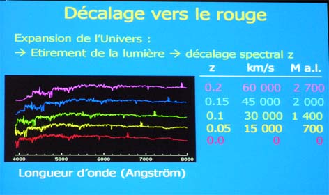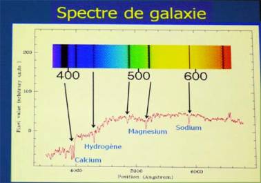 Les galaxies fuient actuellement à une vitesse de l'ordre de 25 km/s/millions d'al. il y a donc étirement des spectres vers le rouge.