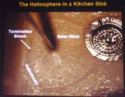 Mais là où Ed Stone nous a vraiment surpris, c'est de nous montrer une exemple familier de représentation élémentaire d'héliosphère : faire couler un robinet dans son évier, comme on le voit sur cette photo.
