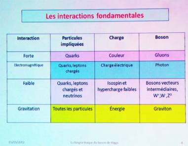 (Le conférencier a eu la gentillesse de nous donner sa présentation complète (en pdf) elle est disponible sur le site de la SAF et également disponible sur ma liaison ftp au téléchargement et s'appelle. SAF-traque du boson de Higgs.pdf elle est dans le dossier COSMOLOGIE SAF de la saison 2011-2012,).