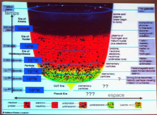 créer les premiers éléments simples : protons, neutrons, électrons,