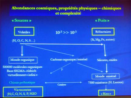Le passage de l'astrochimie à l'astrobiologie n'est pas encore assuré mais fait l'objet de très nombreuses études. Il est vice-président de la SFE, Société Française d'Exobiologie