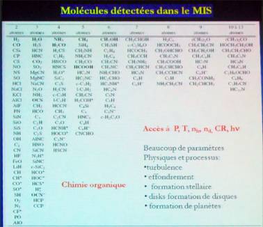 Le milieu interstellaire comprend de nombreuses molécules très complexes. (clic sur l’image)