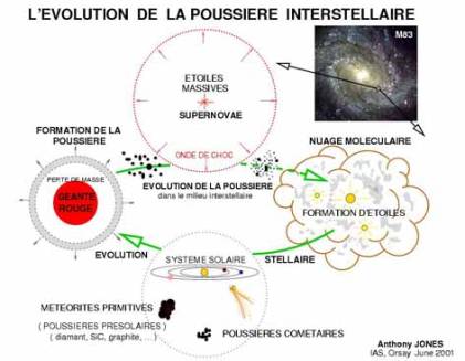 En résumé, l’évolution de la poussière interstellaire sur ce dessin.