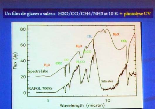 Ces irradiations montrent la formation de molécules complexes prébiotiques. (amino acides…)