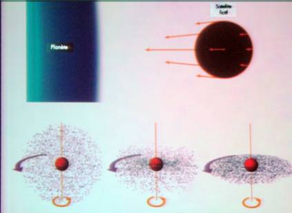 La formation des anneaux à partir d’un nuage de particules qui se met à plat (conservation du moment cinétique).