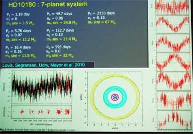Une des découvertes de Harps, dont ils sont le plus fiers : le système multiple (7 planètes) de HD 10180, proche voisin de la Terre, seulement 127 années lumière. Nous en avions parlé dans les news