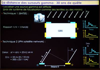 Ceci a provoqué dans les années 1995 un grand débat sur la distance de ces GRB; B. Paczynski était pour les distances cosmologiques et D Lamb non ; il avait tort.