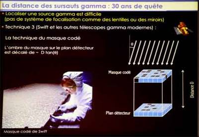 Plus récemment on utilise la méthode des masques codés et ce sont les ombres portées sur le détecteur. Une image de la source peut être alors reconstruite qui donnera l’information direction du GRB