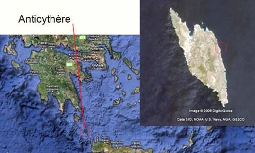 l’Île d’Anticythère (étymologiquement : en face de Cythère), au Nord de la