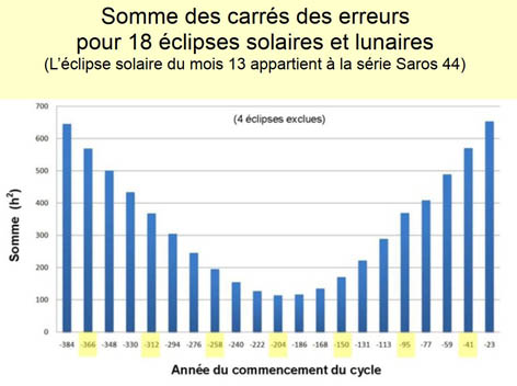 graphique représentant les erreurs de date pour des éclipses solaires, et