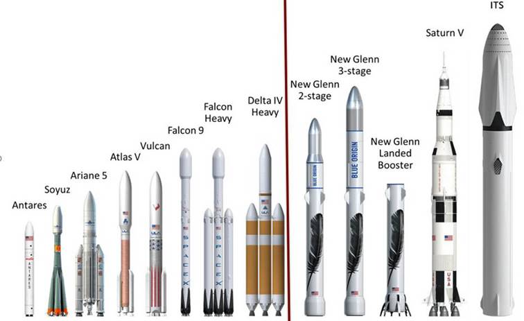 lanceurs actuels (à gauche du trait vertical) et en cours d’élaboration (à