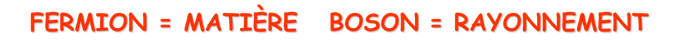 fait ces deux catégories, Fermions et Bosons correspondent à des particules